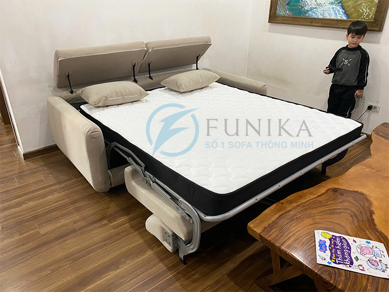 Ghế sofa giường thông minh T188 tại chung cư K35 Tân Mai Hà Nội khi mở ra làm giường ngủ đẹp.